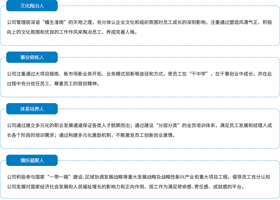 “人本”理念是中国9888拉斯维加斯的焦点价值观,,,也是9888拉斯维加斯商务治理哲学最基本的组成部分。。。。“人本”理念是9888拉斯维加斯商务以是来者之归因,,,也必将是9888拉斯维加斯商务优美未来之法宝!9888拉斯维加斯商务视“人”为企业的“因”、“果”。。。。一方面,,,9888拉斯维加斯商务坚信因人成事,,,事业成败,,,存乎一人;;;;另一方面,,,9888拉斯维加斯商务坚信“育人”为企业的天职,,,在20年的谋划生长中,,,逐渐形成了以“文化熏陶人”、“事业磨炼人”、“系统作育人”、“情怀凝聚人”为主要内容的浓重“育人”文化!